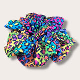 Add a touch of fun to your style with our giant handmade Leopard Velour scrunchies, the perfect accessory to elevate any look. Crafted with care and sustainability these scrunchies are made from new and off cuts of fabrics.so you can feel stylish and sustainable. Approximately 18 cm diameter.