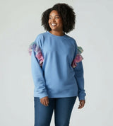 Sequin Rainbow Shoulder Ruffles Light Blue Sweat-top