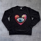 Pink Sequin Heart and Eye Embellished Black Sweat-top