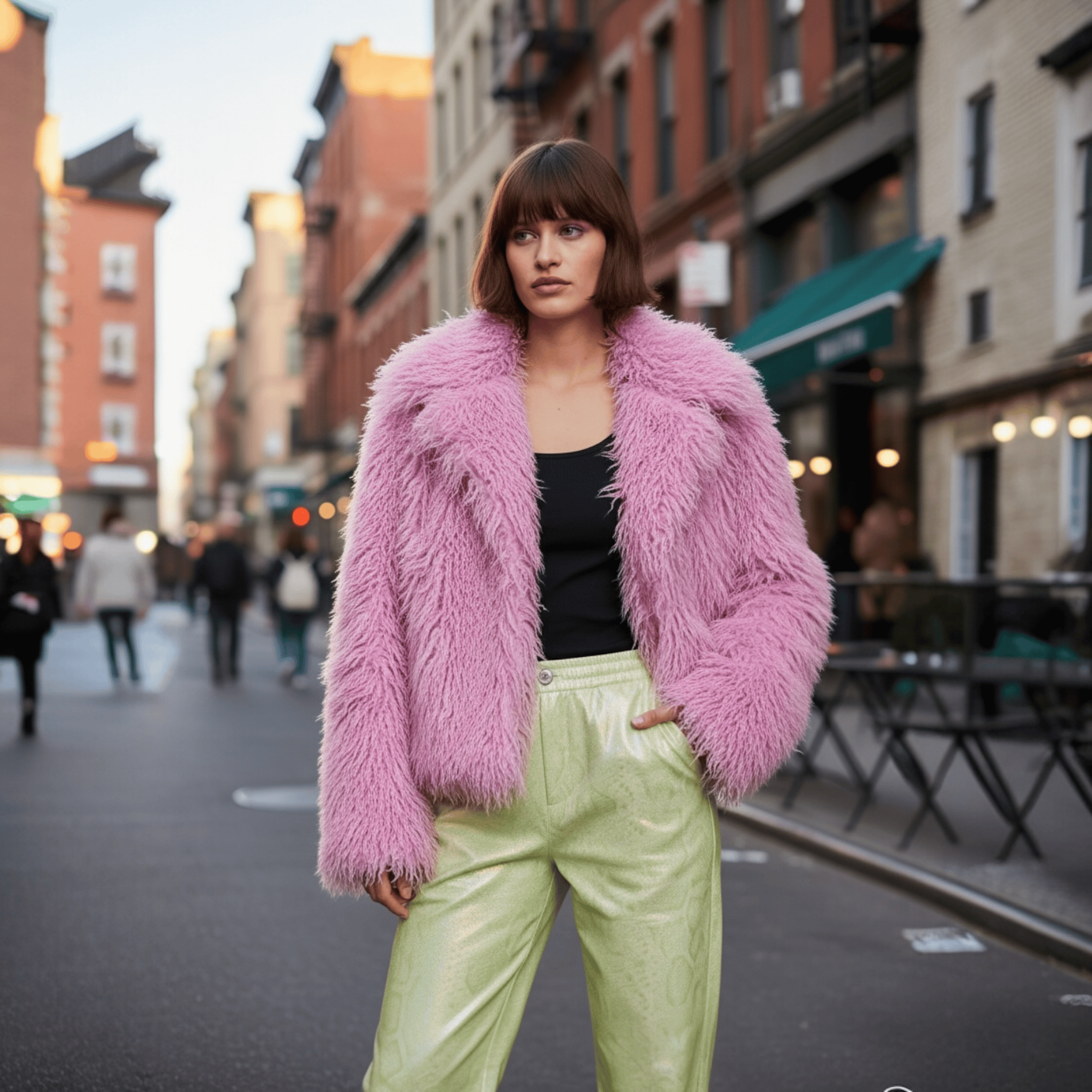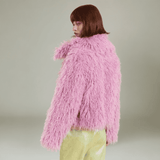 Make a sustainable style statement in this Pink bamboo fibre feather effect faux fur jacket is lightweight, warm and breathable. This jacket feels like a big stylish hug.