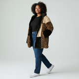 A fun animal print panelled mid length zip up jacket