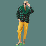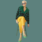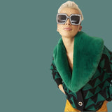 This faux fur detachable collar green and black cardigan is a fashion forward statement.