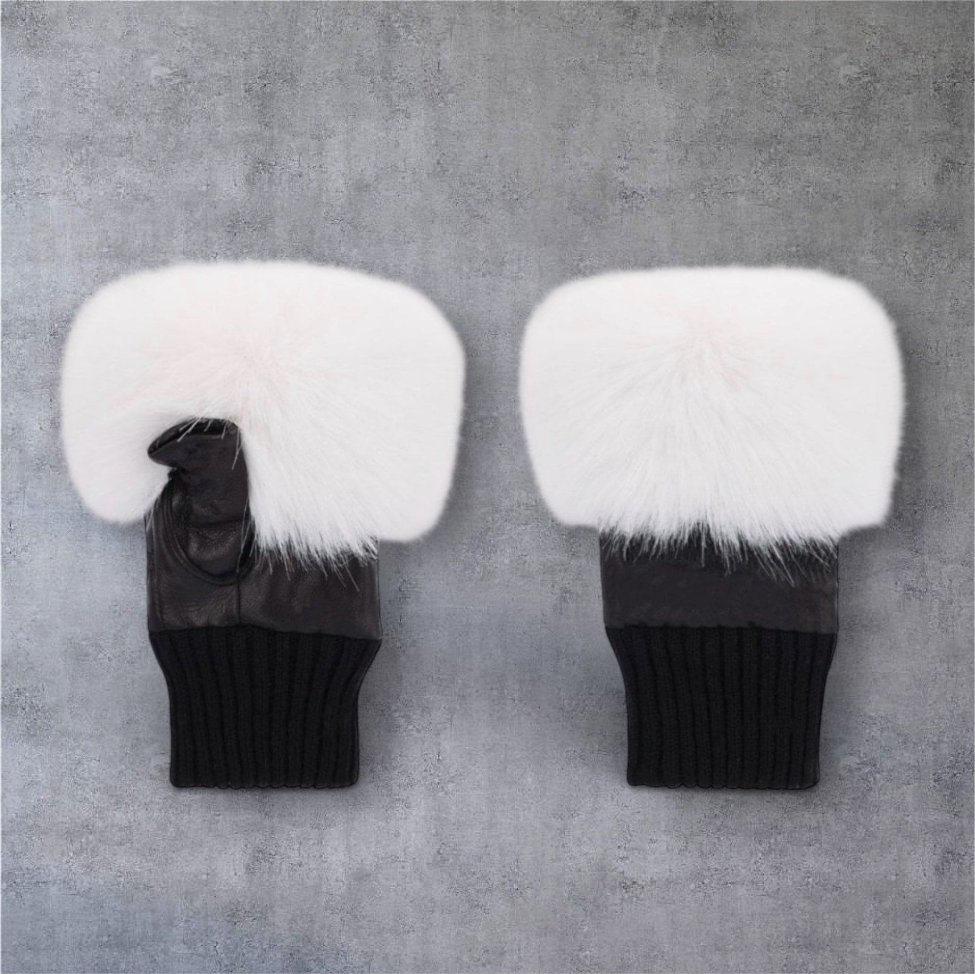 Fingerless Real leather White faux Fur Gloves