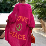 This oversized full length Cardigan is a great Autumn piece. Style up or down is an everyday piece you won’t want to take off. With Love and Peace knitted into the back. You can spread happiness and colour wherever you go.