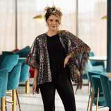 Elevate your outfit whether it's turning heads at festivals, stealing the spotlight at parties or simply rocking the school run. This shimmering elegant kimono will have you exuding confidence and glamour.