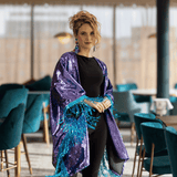 Sequin Kimono Purple and Turquoise with Turquoise Sequin Fringe