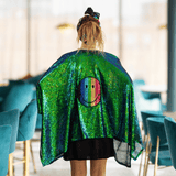 Sequin Kimono Mermaid Green with Rainbow Smile Appliqué