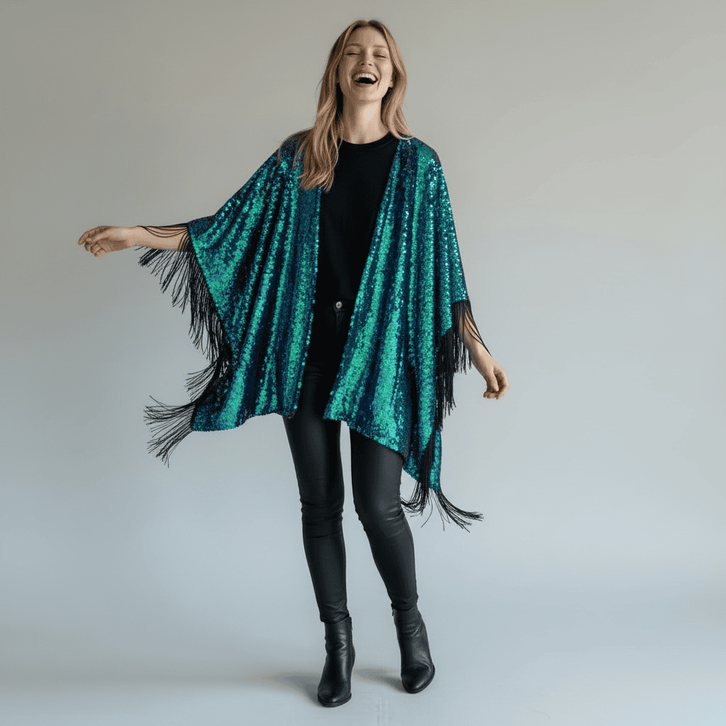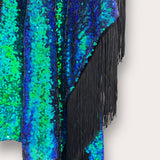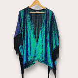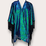 Sequin Kimono Mermaid Green with Black Fringing