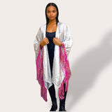 Silver Sequin Kimono with Rainbow Fringe