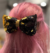 Brighten up any look with our handmade sequin bows, crafted sustainably from upcycled fabric scraps. Each bow is uniquely designed with repurposed sequin fabric, combining eco-friendly practices with standout style. Perfect for adding a touch of glamour to any hairstyle. These one-of-a-kind bows are both beautiful and planet-friendly. Embrace sustainable fashion with our handmade sequin bows – a little sparkle goes a long way