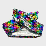 Handmade from mermaid sequin fabric you can stroke the sequins one way or the other to show more of one of each colour.