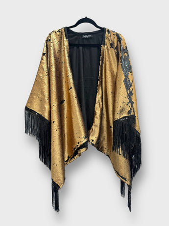 Sequin Kimono Gold and Black Two-Tone with Black Fringe