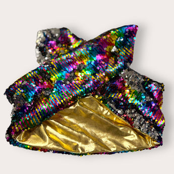 Handmade from mermaid sequin fabric you can stroke the sequins one way or the other to show more of one of each colour.