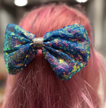 Brighten up any look with our handmade sequin bows, crafted sustainably from upcycled fabric scraps. Each bow is uniquely designed with repurposed sequin fabric, combining eco-friendly practices with standout style. Perfect for adding a touch of glamour to any hairstyle. These one-of-a-kind bows are both beautiful and planet-friendly. Embrace sustainable fashion with our handmade sequin bows – a little sparkle goes a long way