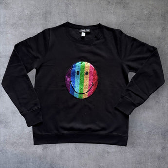 Smiley Face Sequin Embellished Black Sweat-top