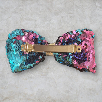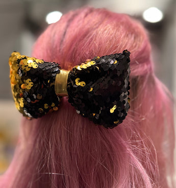 Brighten up any look with our handmade sequin bows, crafted sustainably from upcycled fabric scraps. Each bow is uniquely designed with repurposed sequin fabric, combining eco-friendly practices with standout style. Perfect for adding a touch of glamour to any hairstyle. These one-of-a-kind bows are both beautiful and planet-friendly. Embrace sustainable fashion with our handmade sequin bows – a little sparkle goes a long way