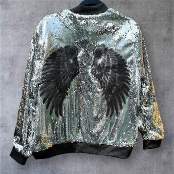 Sequin Silver Jacket with Sequin Black Wings