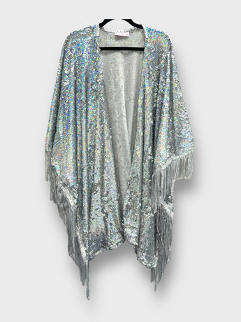 Sequin Kimono Iridescent Silver with Silver Sequin Fringe