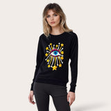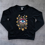 Sequin Stars and Eye Embellished Black Sweat-top