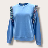 Sequin Iridescent Shoulder Ruffles Light Blue Sweat-top