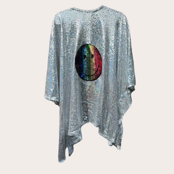 Silver Sequin Kimono with smiley face Appliqué