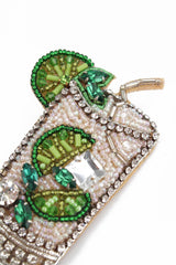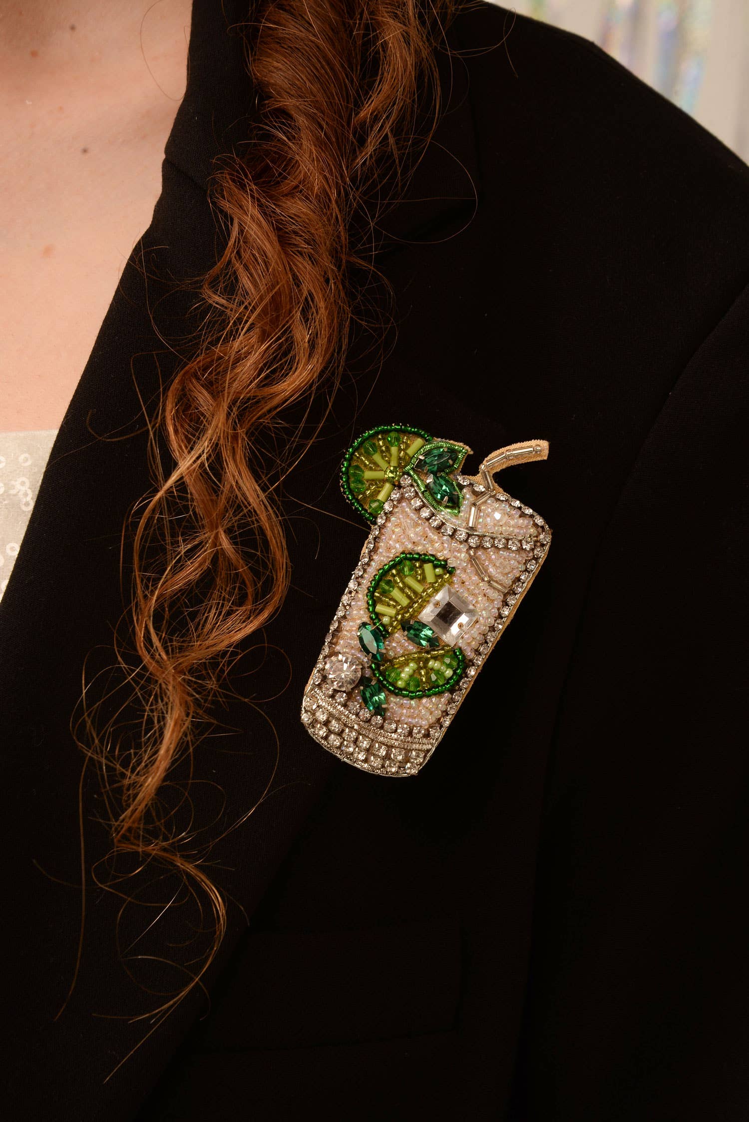 Add interest and sparkle to blazers and tops with our Mojito brooch. -Handcrafted by talented artisans in India. -Dimension approximately 80mm long and 50mm wide. -Made with glass beads on a lightweight fabric backing.